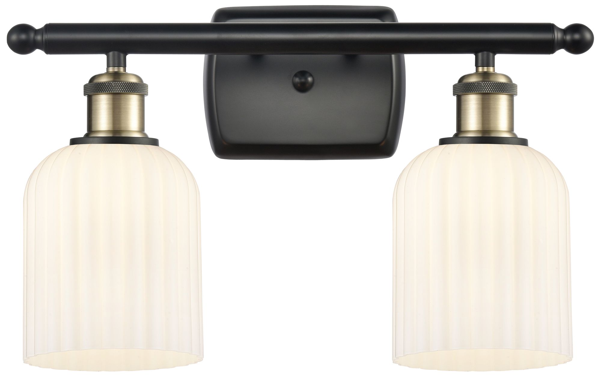 Ballston Bridal Veil 2 Light 15" Bath Vanity Black Brass Gloss White Shade
