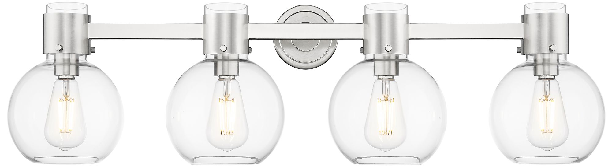 Downtown Lawton Sphere 34"W Satin Nickel Vanity Light w/ Clear Shade