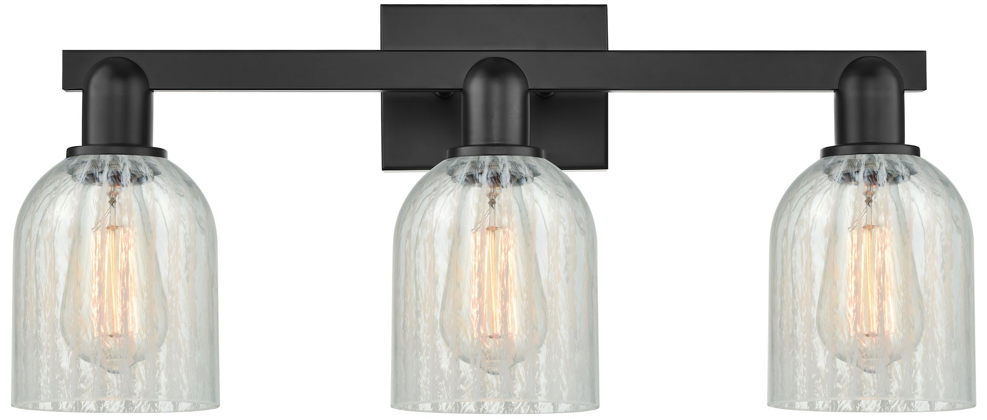 Bell 3 Light 32" LED Bath Light - Matte Black - Clear Deco Swirl Shade