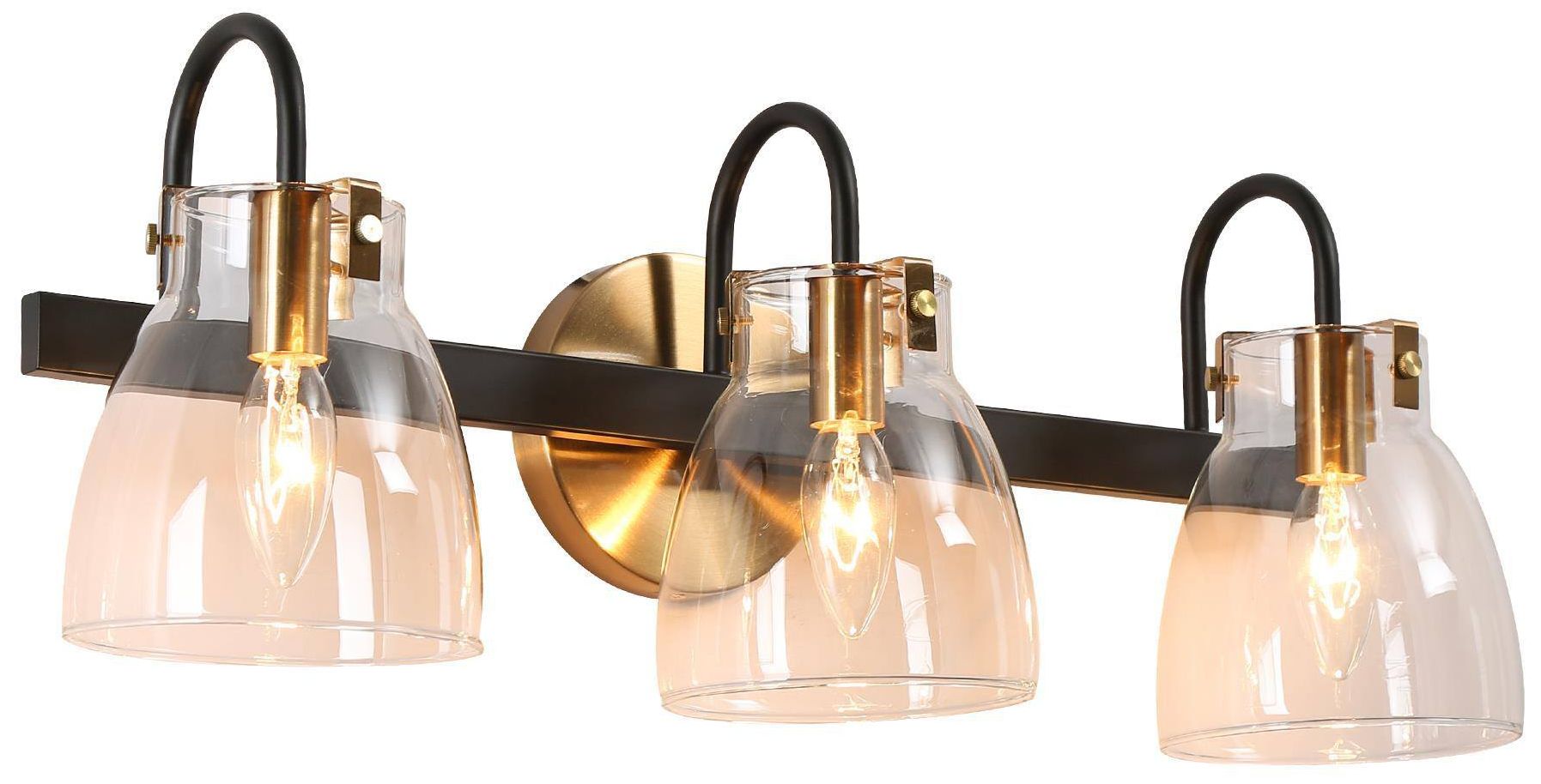 Ballston Urban Bell 28" 3 Light Black Brass Bath Light w/ Clear Shade