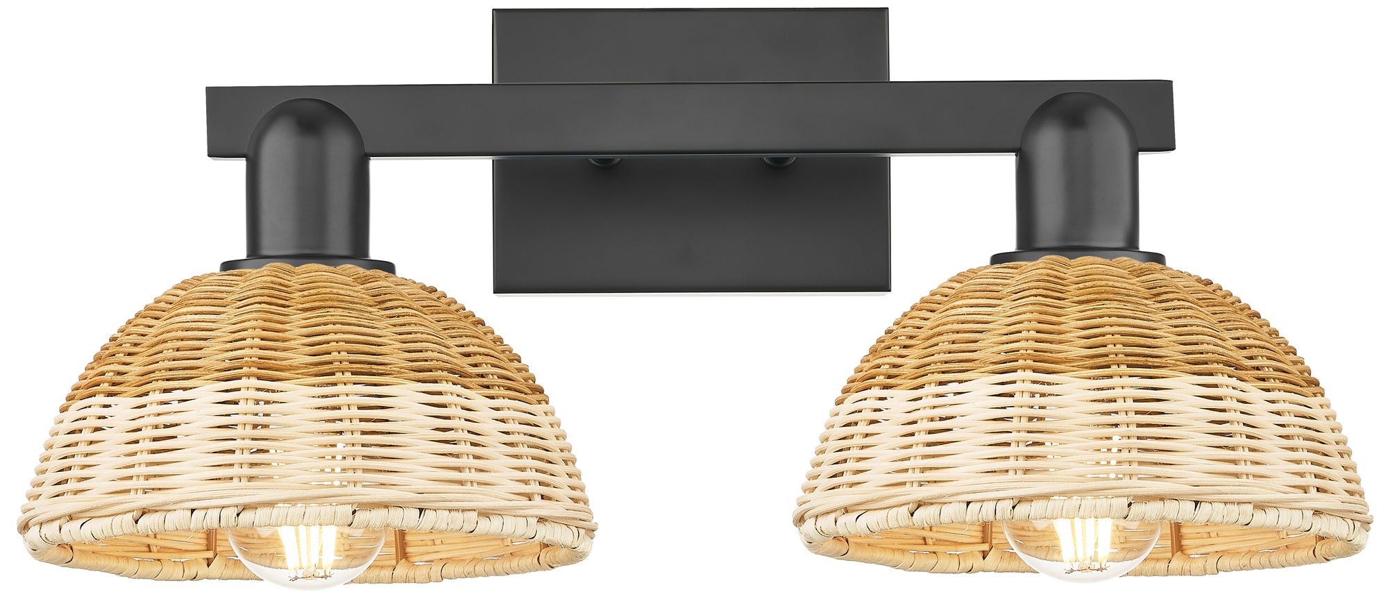 Natural Ballston Dome 16"W 2-Lt Black Bath-Lt w/ Basketweave Shade