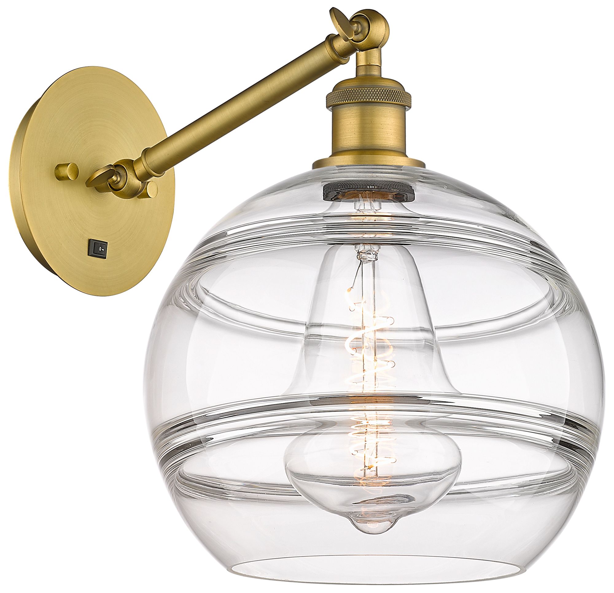 Rochester 12" High Brushed Brass Adjustable Sconce with Clear Shade