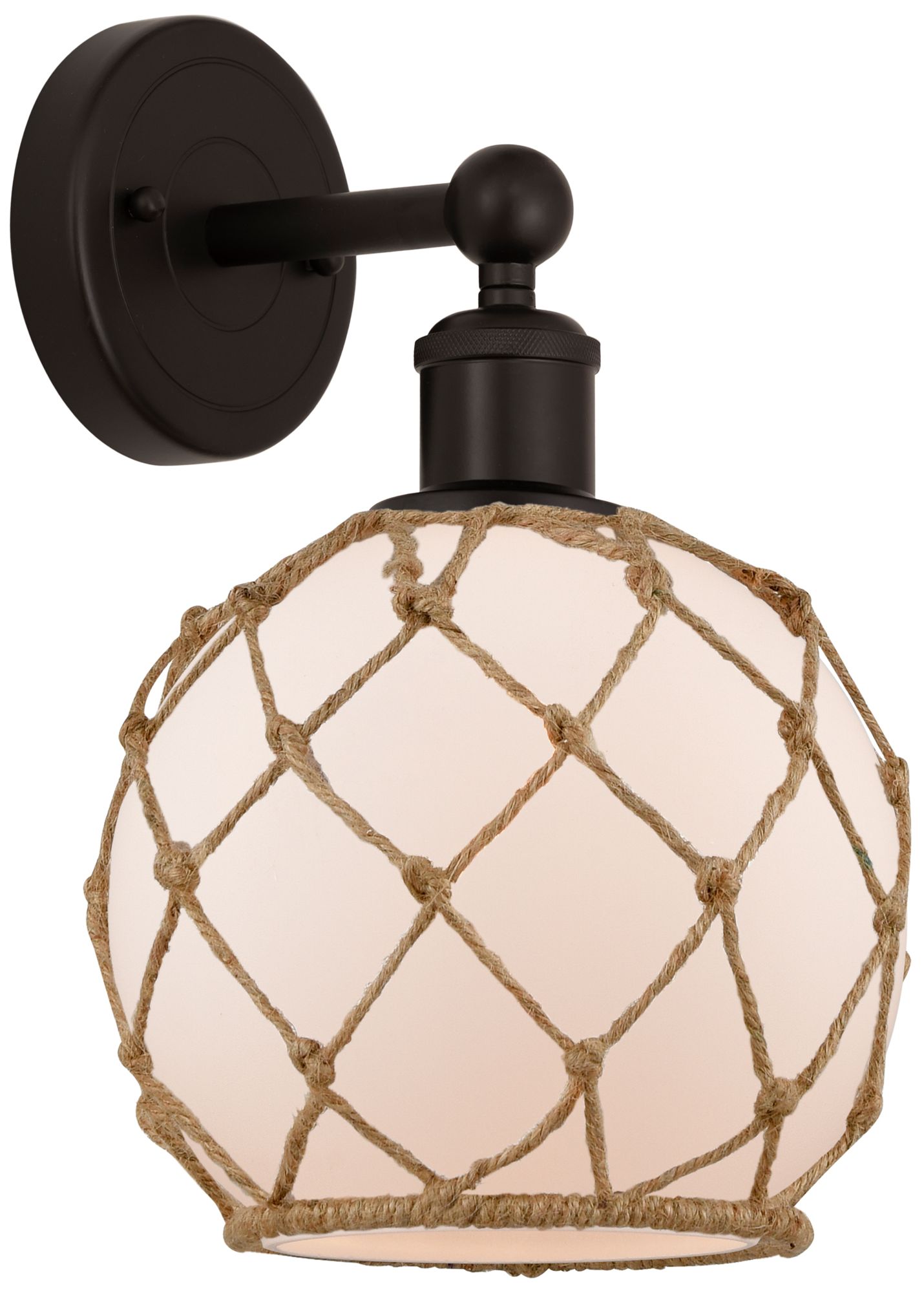 Edison Farmhouse Rope 12"H Oiled Bronze Sconce w/ White Brown Shade