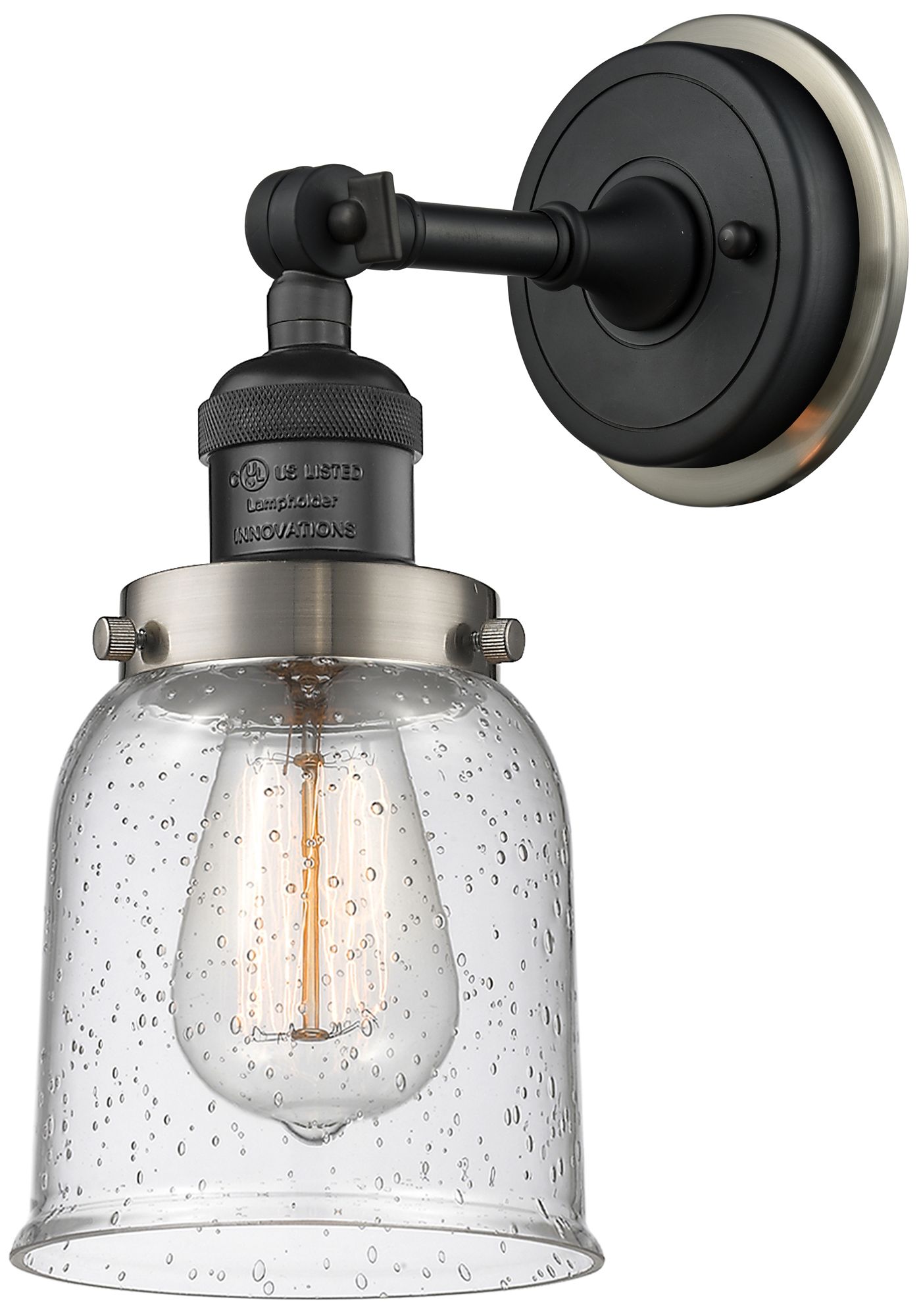 Franklin Bell 10"H Satin Nickel Accented Black Brass Sconce w/ Seedy S