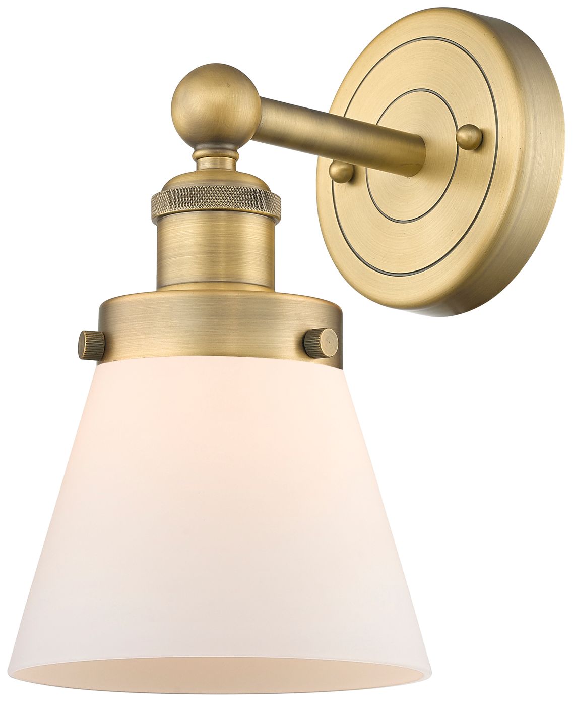 Cone 11 1/4" High Brushed Brass Wall Sconce w/ White Shade