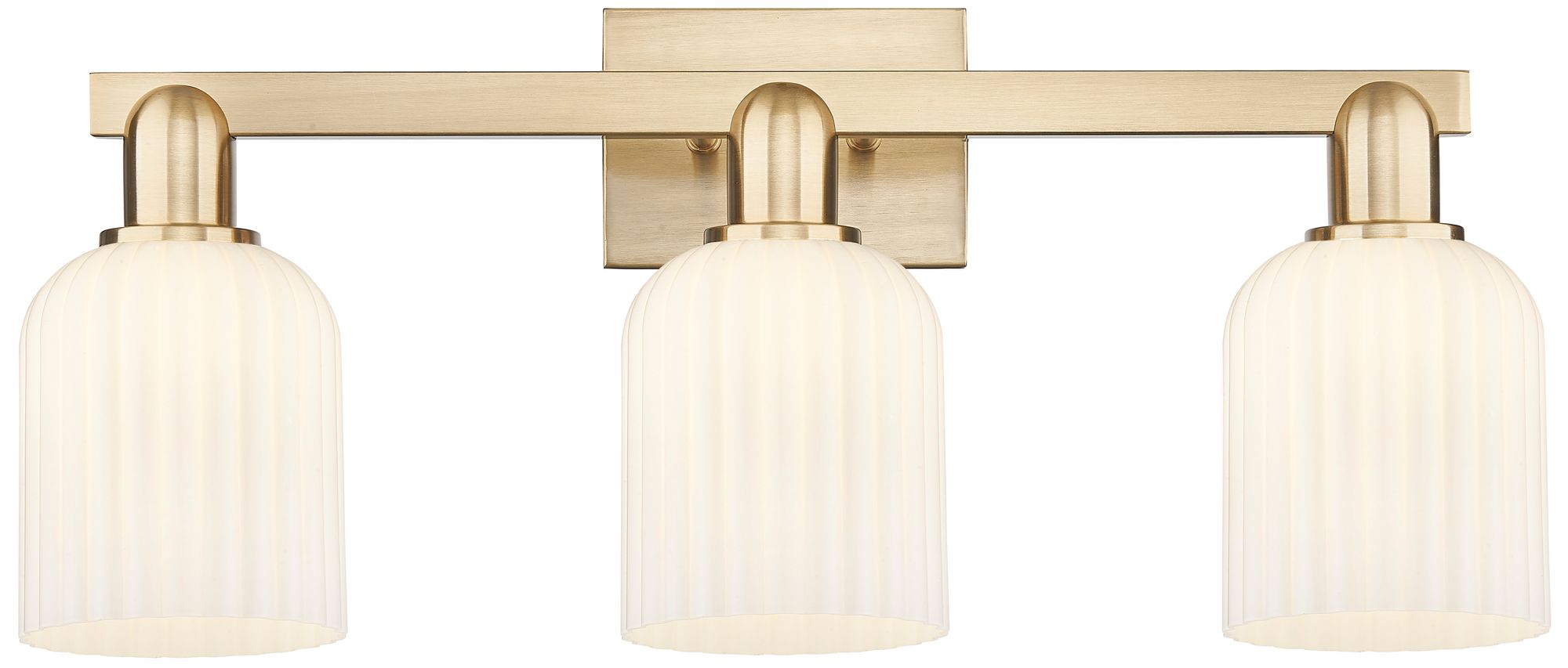 Bridal Veil 24"W 3 Light Champagne Bath Light With Gloss White Shade