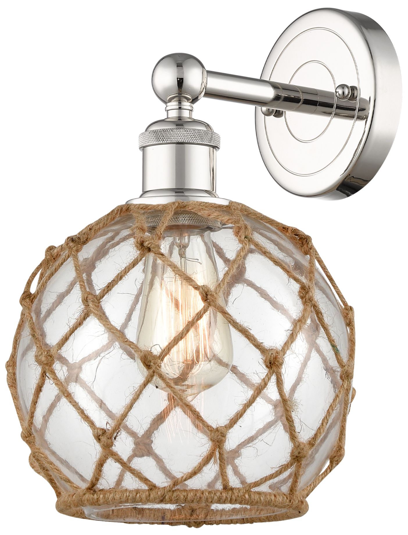 Edison Farmhouse Rope 12"H Polished Nickel Sconce w/ Clear Brown Shade
