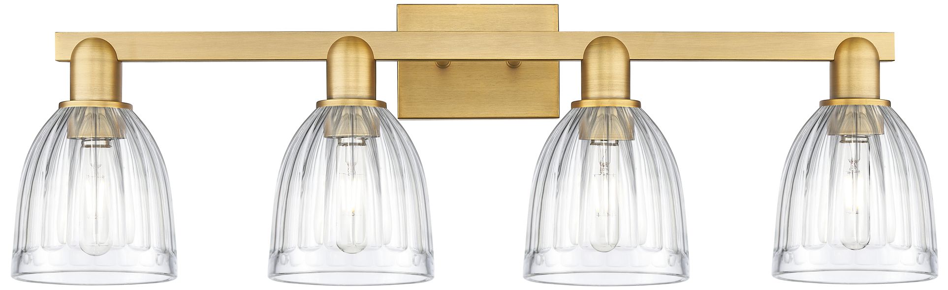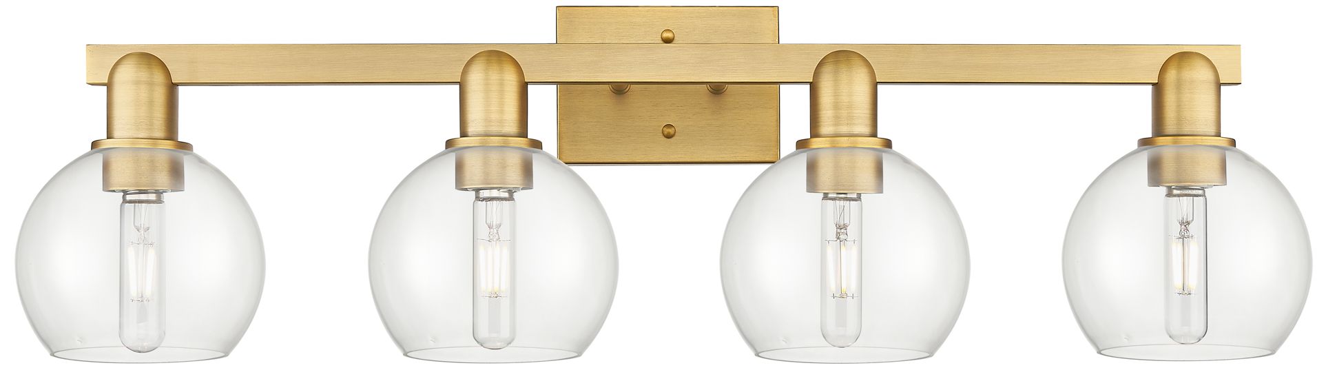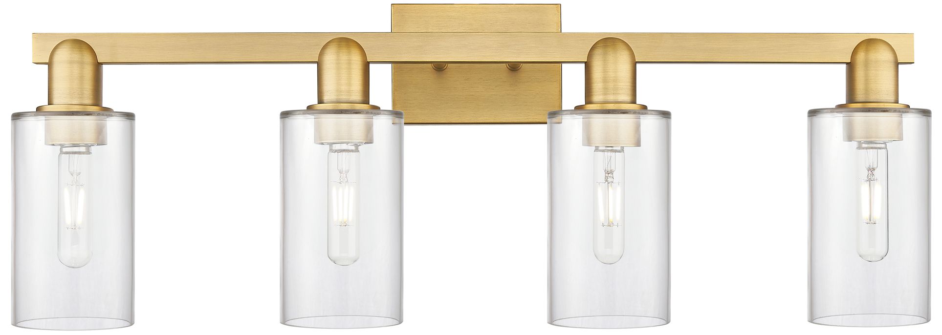 Arcadia Bella 33"W 4 Light Brushed Brass Vanity Light With Clear Shade