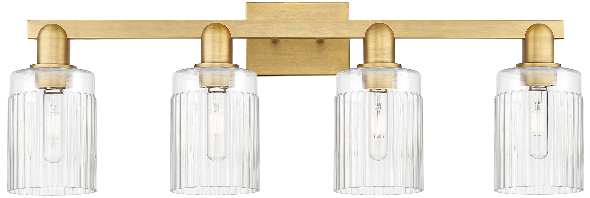 Arcadia Cobbleskill 32"W 4 Light Brushed Brass Vanity w/ Clear Shade