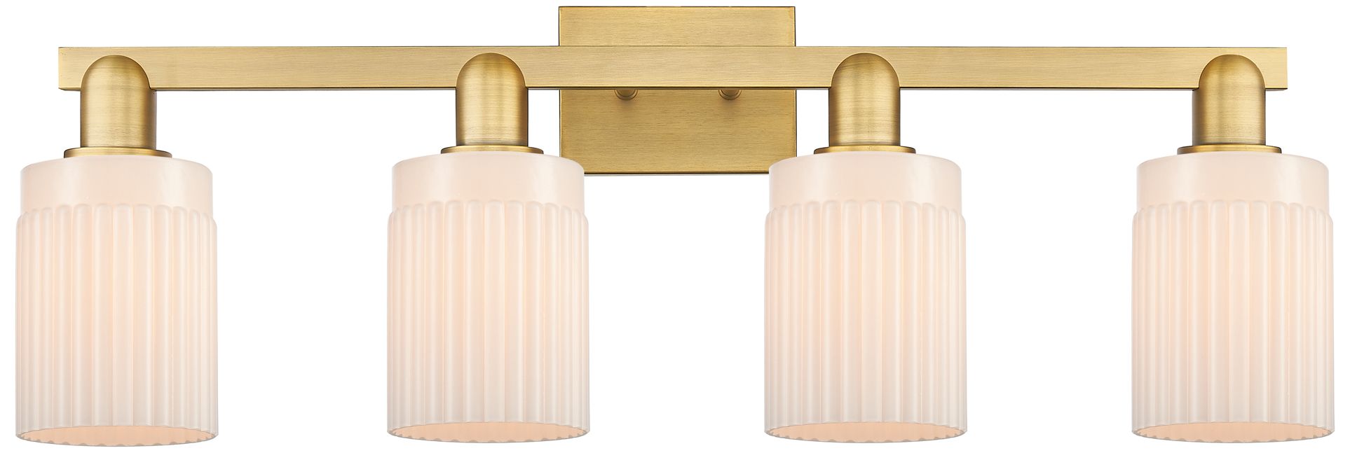 Arcadia Hadley 32"W 4 Light Brushed Brass Vanity w/ Matte White Shade