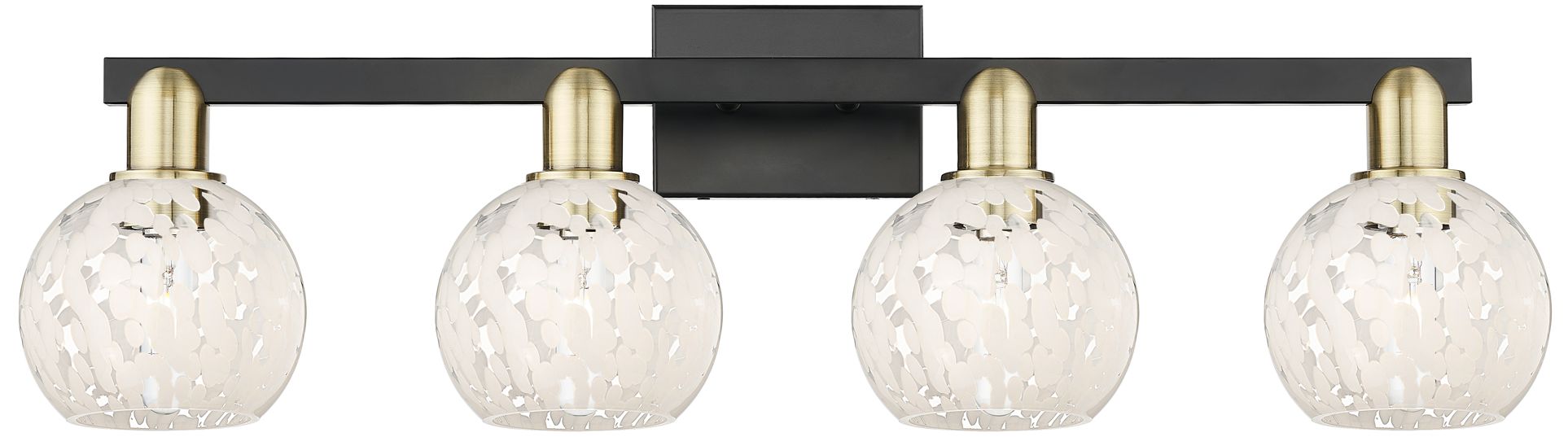 Arcadia White Mouchette 33"W 4 Light Black Antique Brass Vanity Light