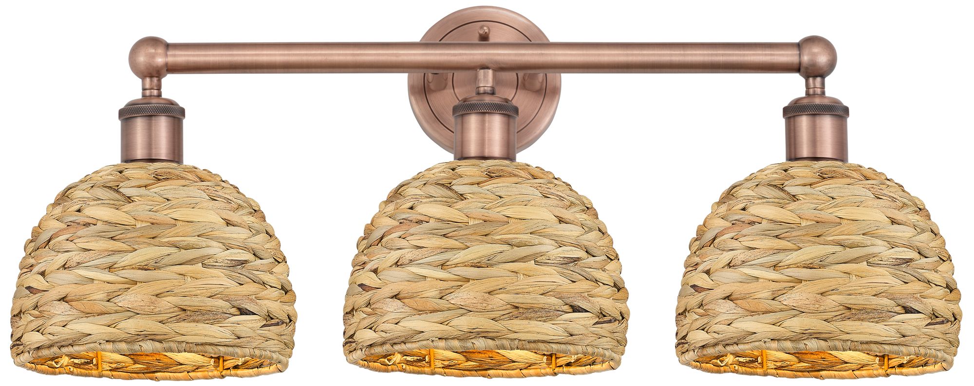 Edison Woven Rattan 26" Wide 3 Light Antique Copper Vanity Light With