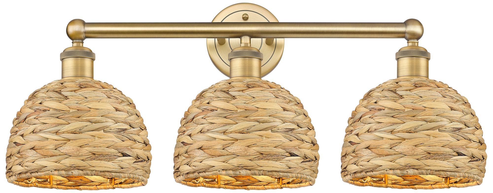 Edison Woven Rattan 26" Wide 3 Light Brushed Brass Vanity Light With
