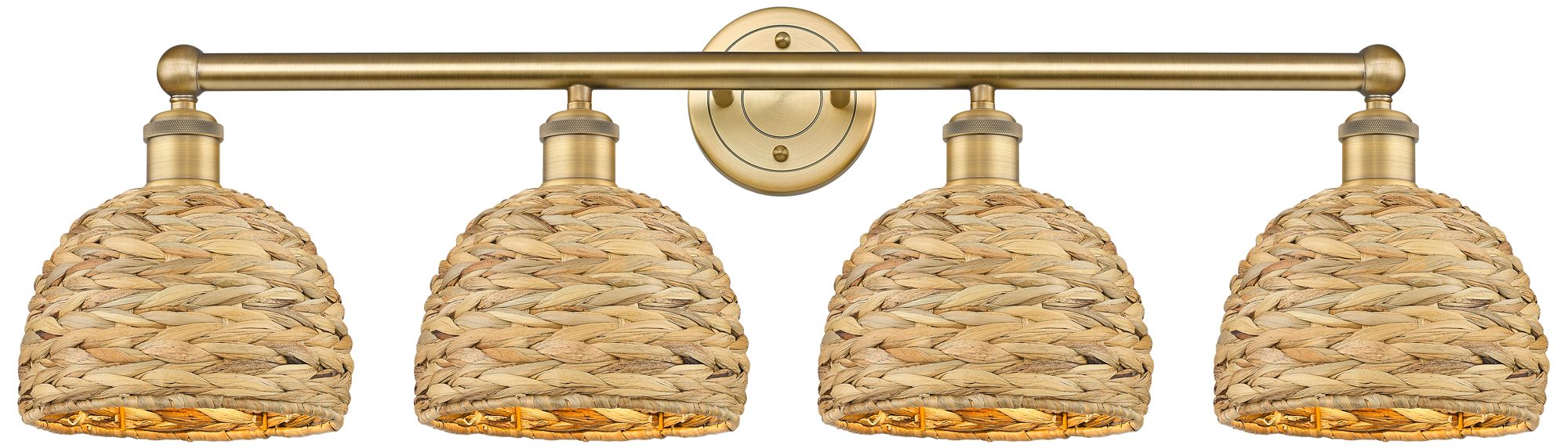 Edison Woven Rattan 35" Wide 4 Light Brushed Brass Vanity Light With