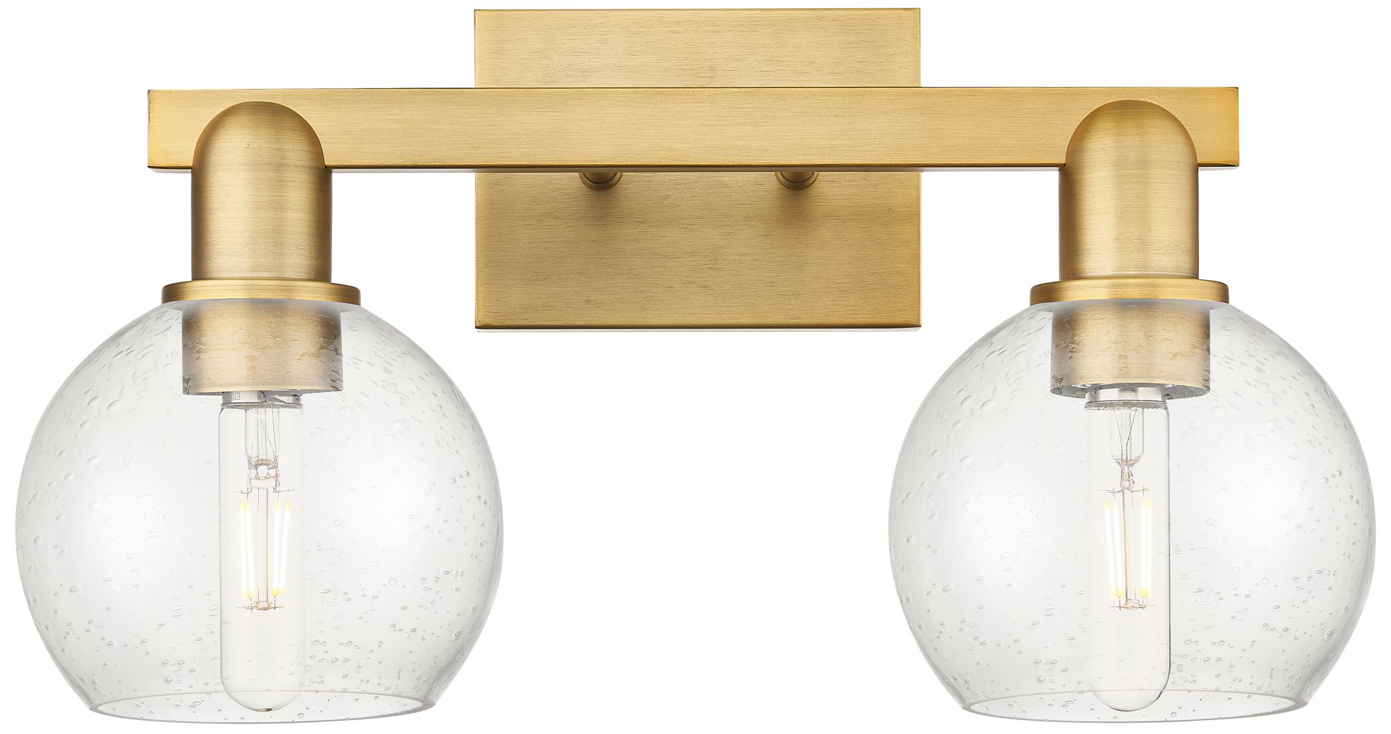 Arcadia Athens 17"W 2 Light Brushed Brass Bath Light With Seedy Shade