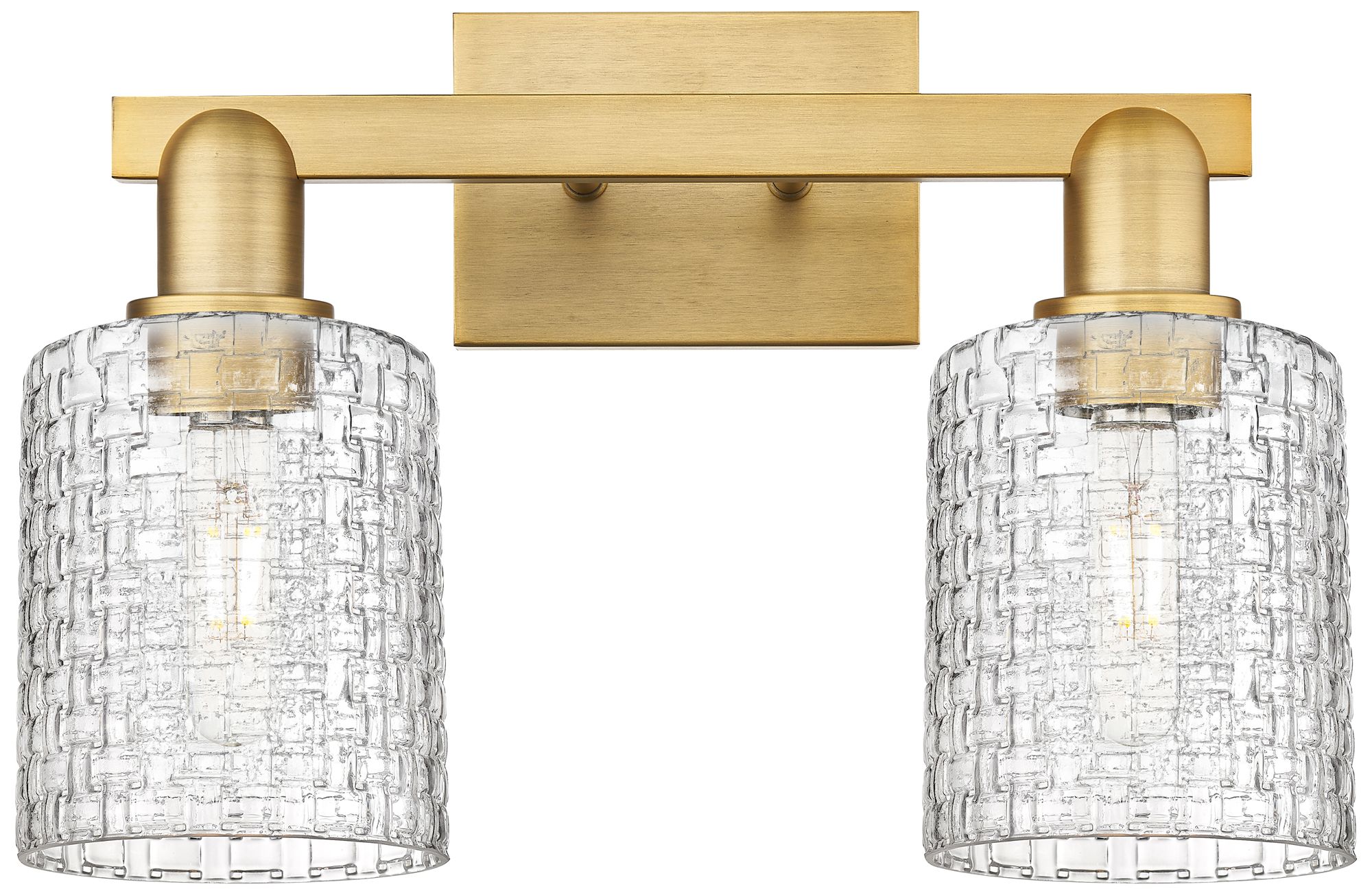 Arcadia Athens 17"W 2-Lt Brushed Brass Vanity w/ Basketweave Shade