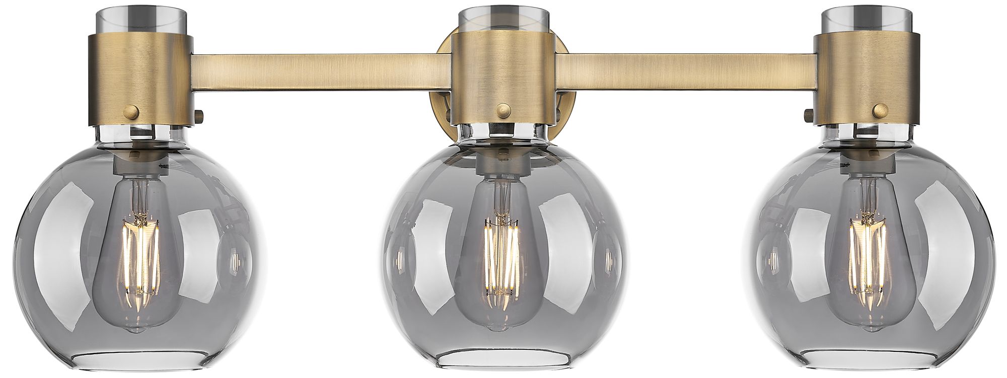 Downtown Lawton Sphere 24"W Brass Vanity Light w/ Light Smoke Shade