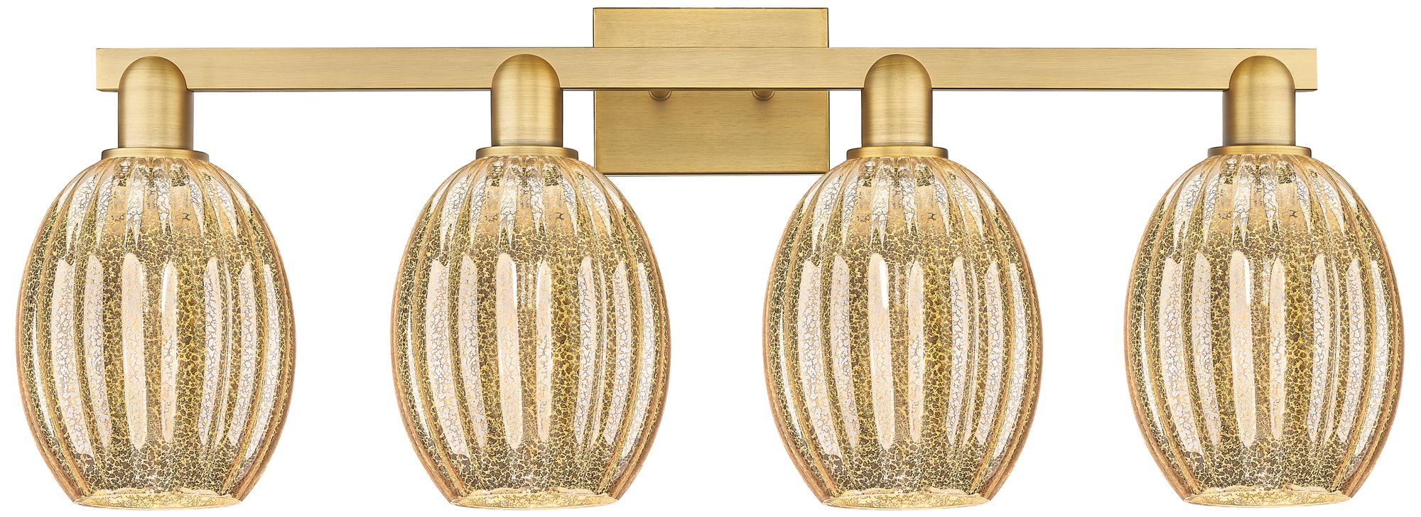 Preston 36"W 4 Light Brushed Brass Bath Light With Bell Mercury Shade