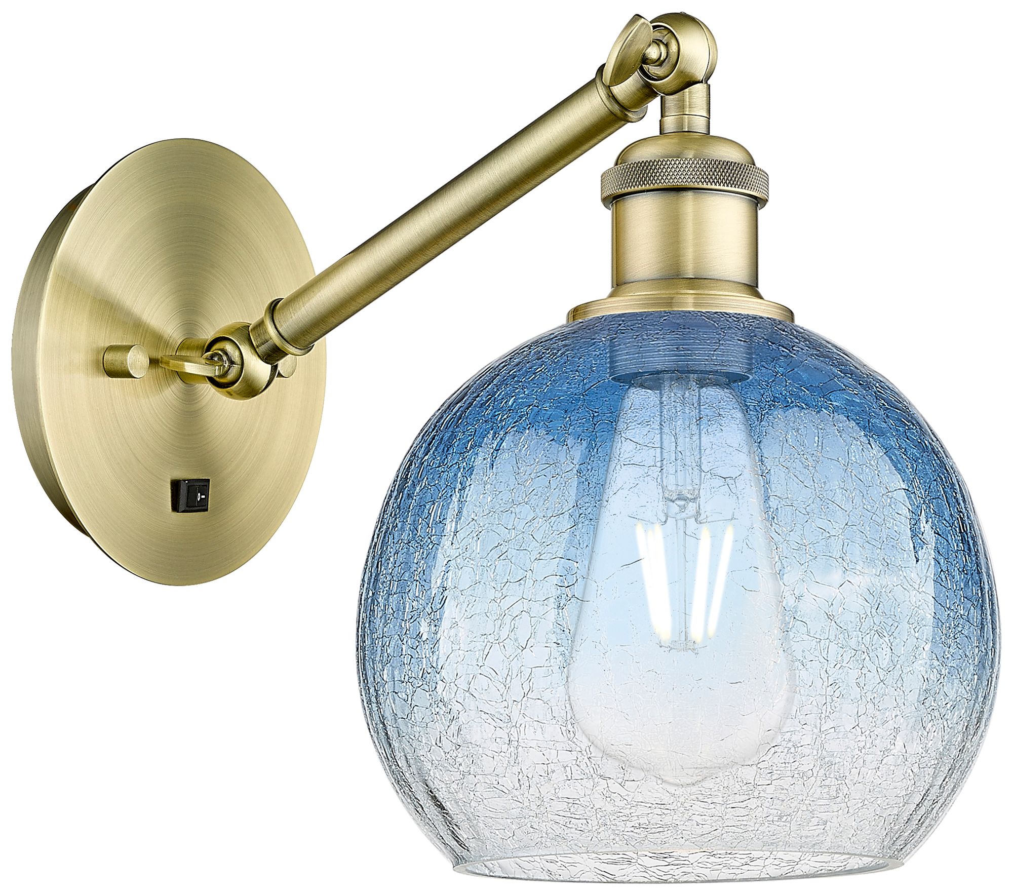 Ballston Brookhaven Globe 10"H Brass Swivel Sconce With Sapphire Shade