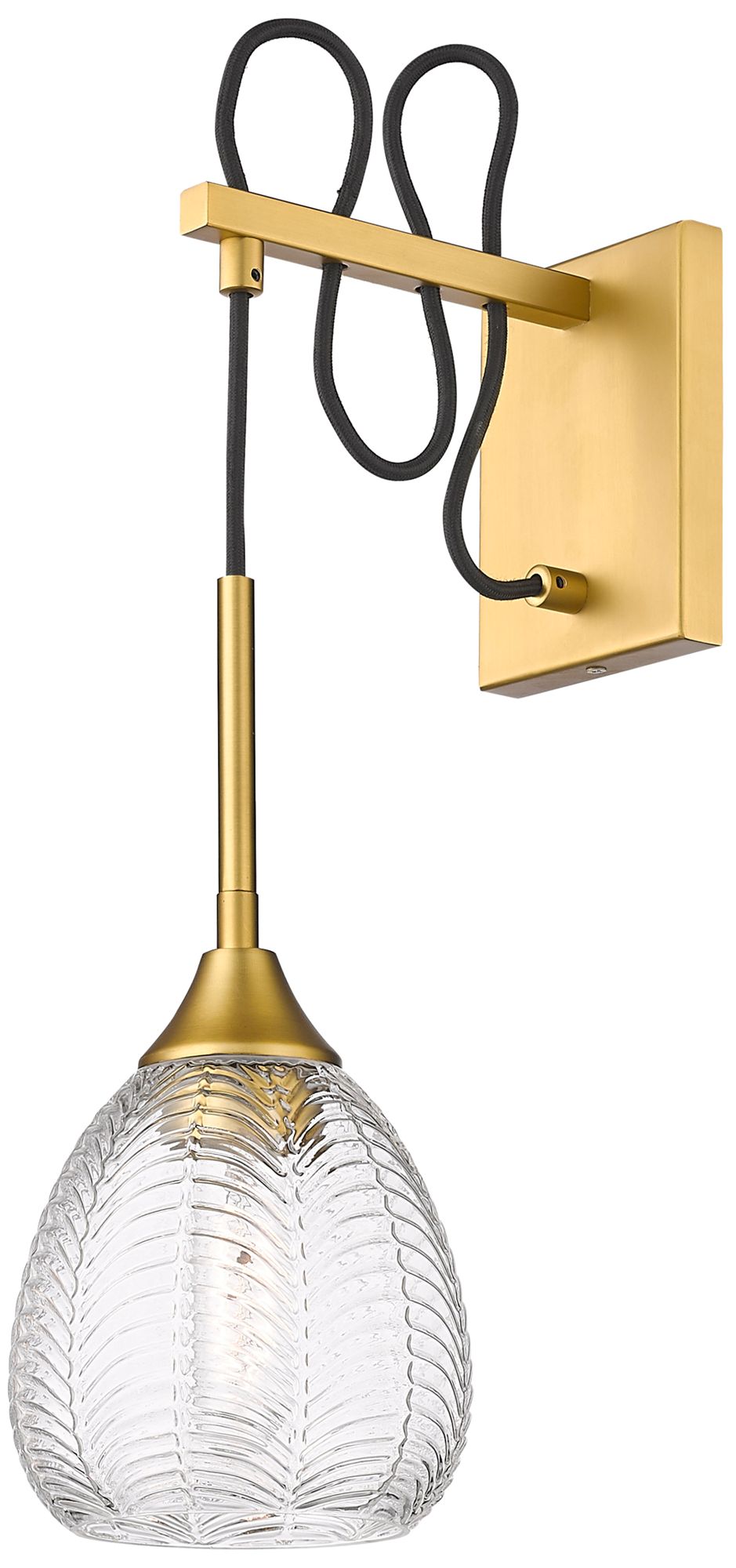 Edison Athens 10.5"High Satin Gold Sconce With Clear Deco Swirl Shade
