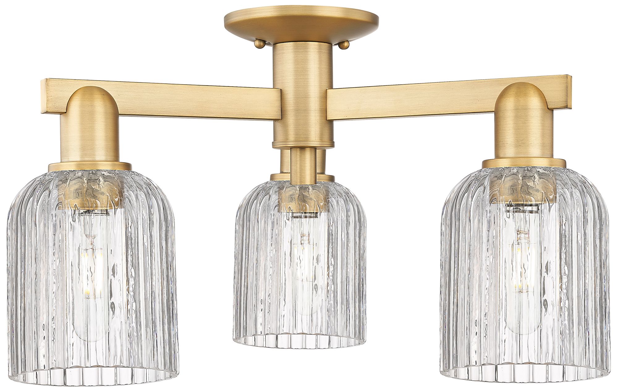 Bridal Veil 23"W 3 Light Brushed Brass Semi-Flush With Clear Shade