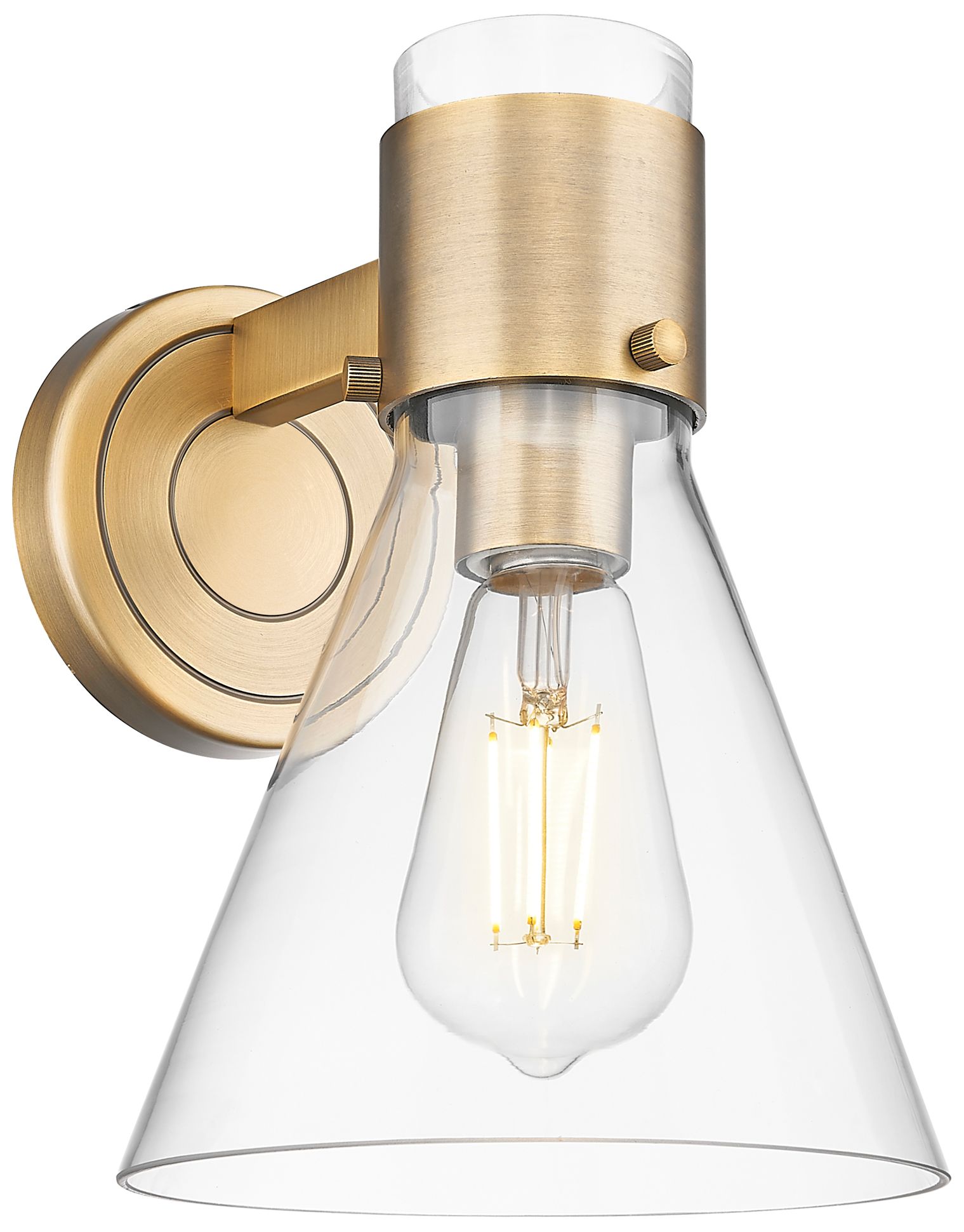Downtown Lawton Cone 9 "H Brushed Brass Wall Sconce w/ Clear Shade