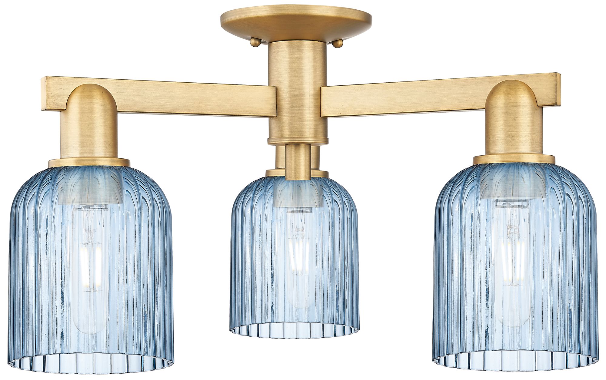 Bridal Veil 23"W 3 Light Brushed Brass Semi-Flush Mount With Blue Shade