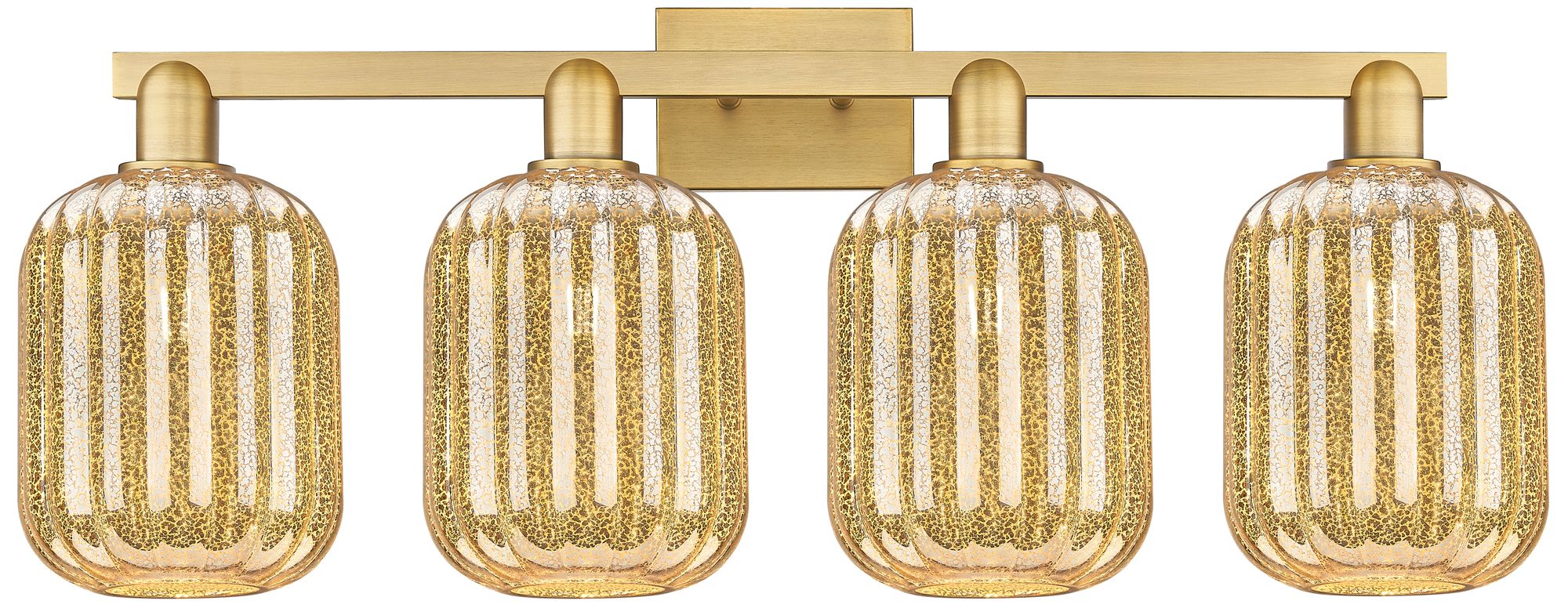 Preston 36"W 4 Light Brushed Brass Bath Light With Mercury Jar Shade