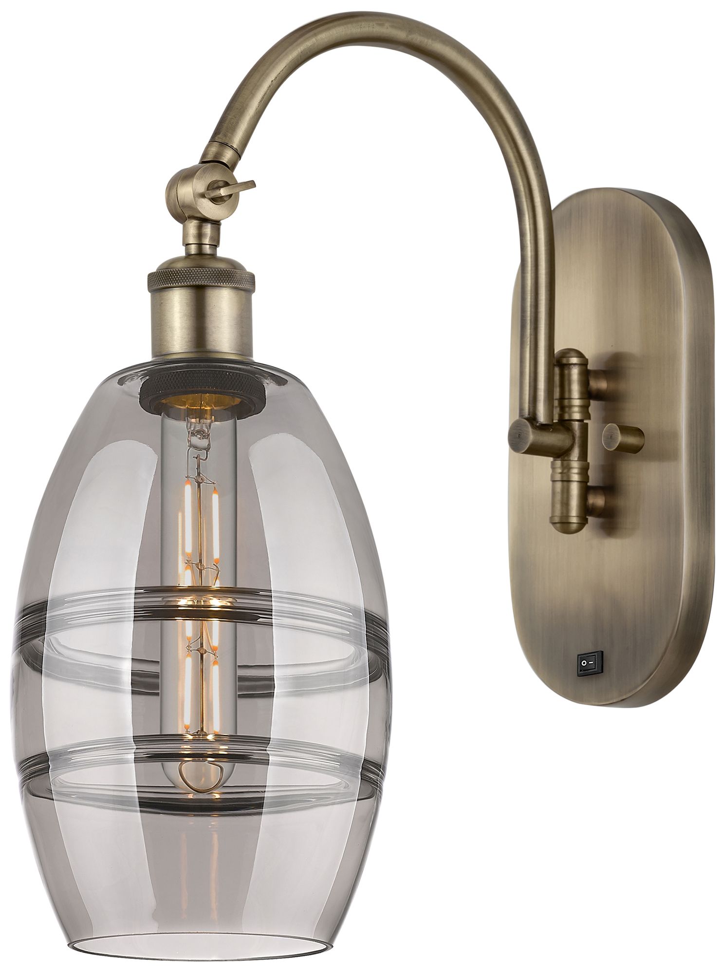 Ballston Vaz 11.63"H Antique Brass Adjustable Sconce w/ Smoke Shade