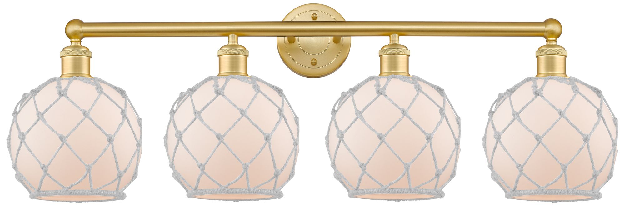 Edison Farmhouse Rope 35"W 4 Light Gold Bath Light w/ White Shade