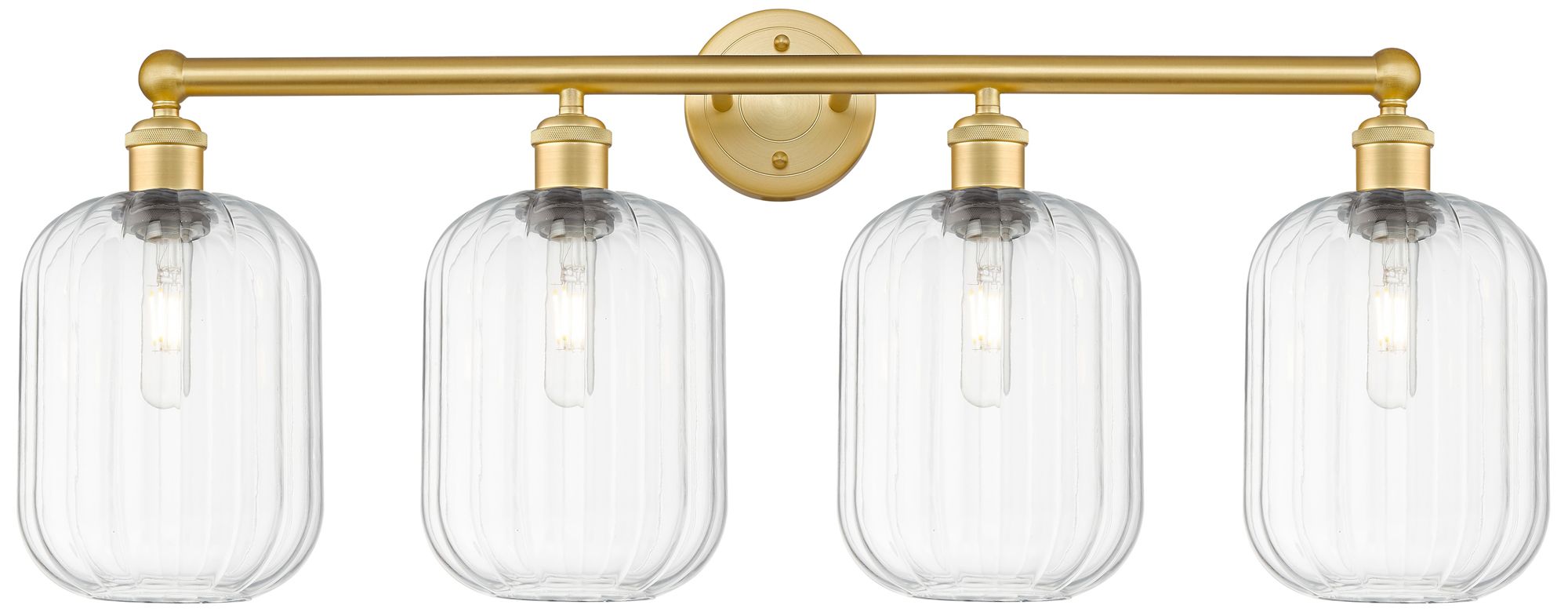 Edison Preston 34"W 4 Light Satin Gold Vanity Light w/ Clear Jar Shade