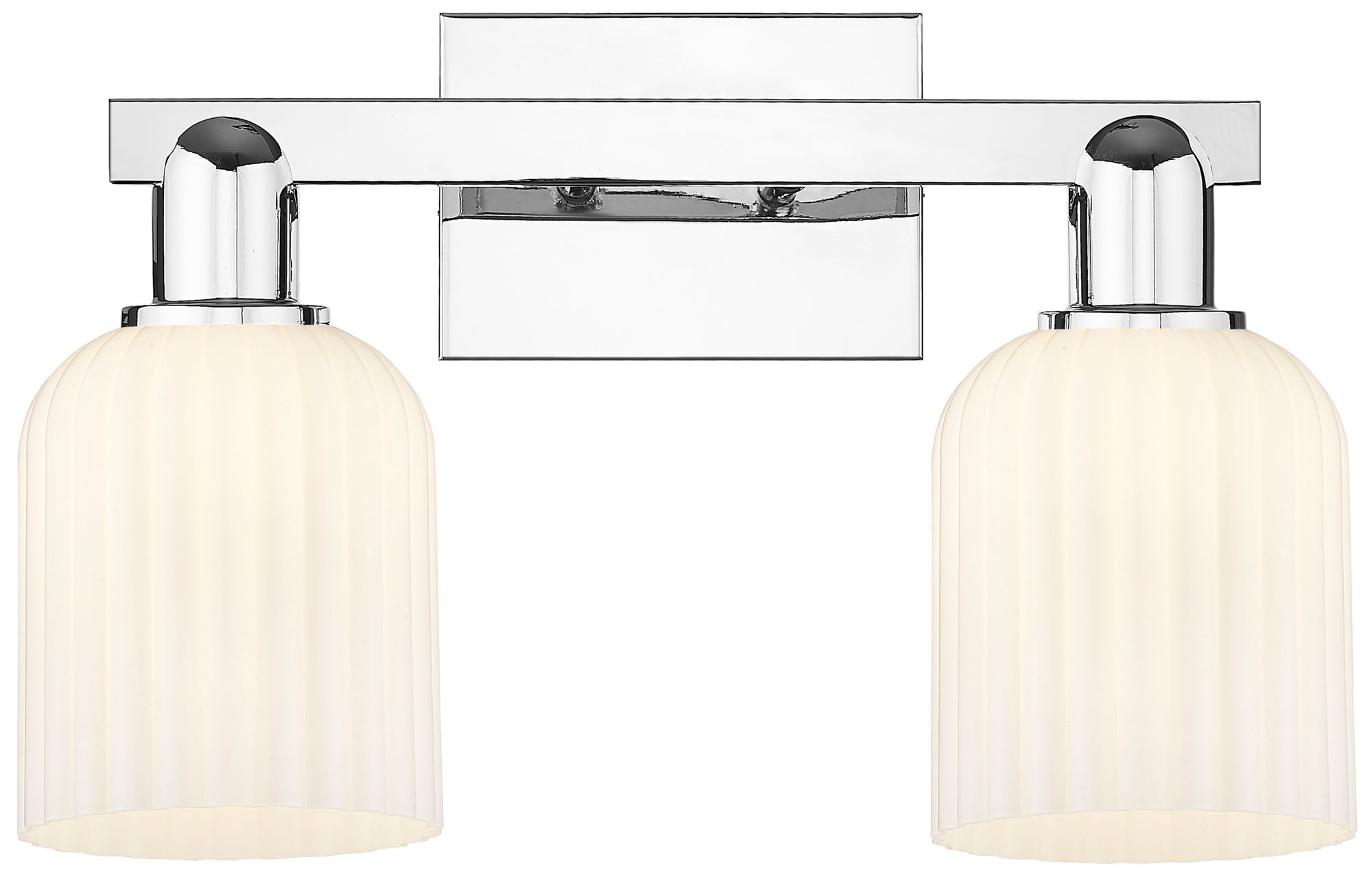 Bridal Veil 16"W 2 Light Chrome Bath Light With Gloss White Shade