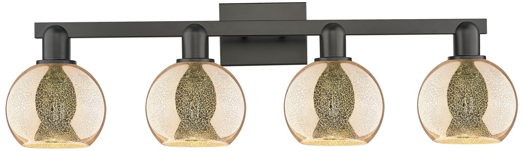 Arcadia Athens 33"W 4 Light Matte Black Bath Light With Mercury Shade