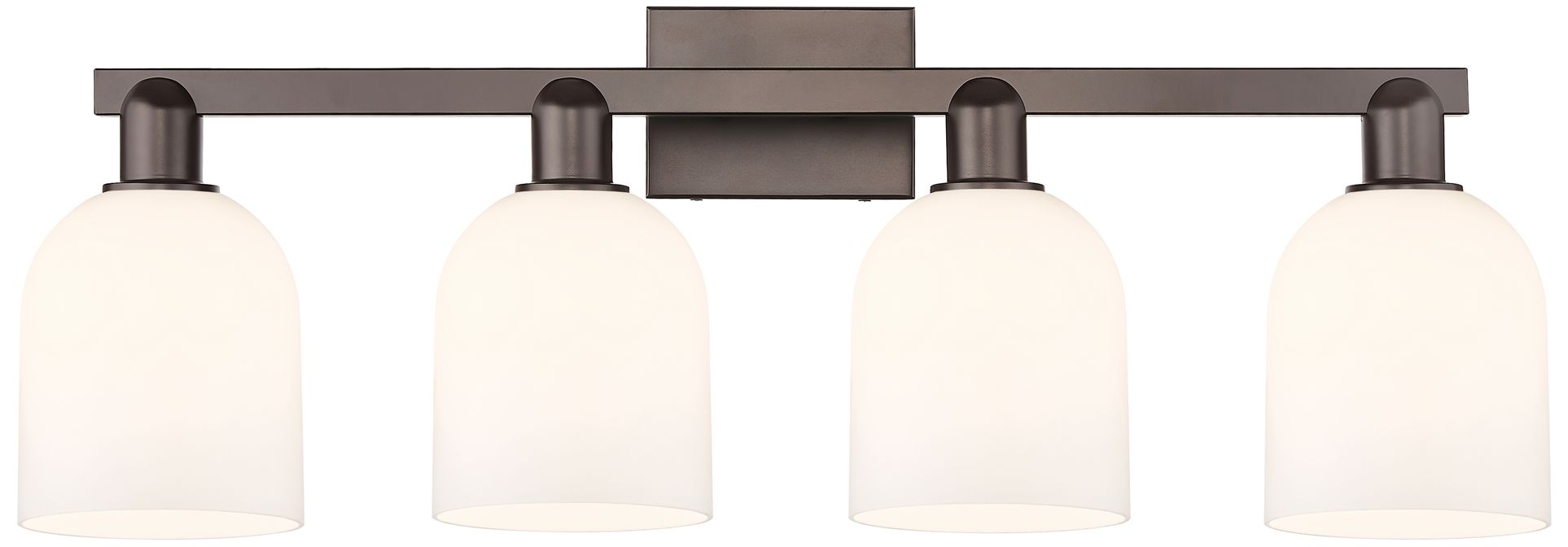 Arcadia Bella 33"W 4 Light Oiled Bronze Vanity Light w/ White Shade
