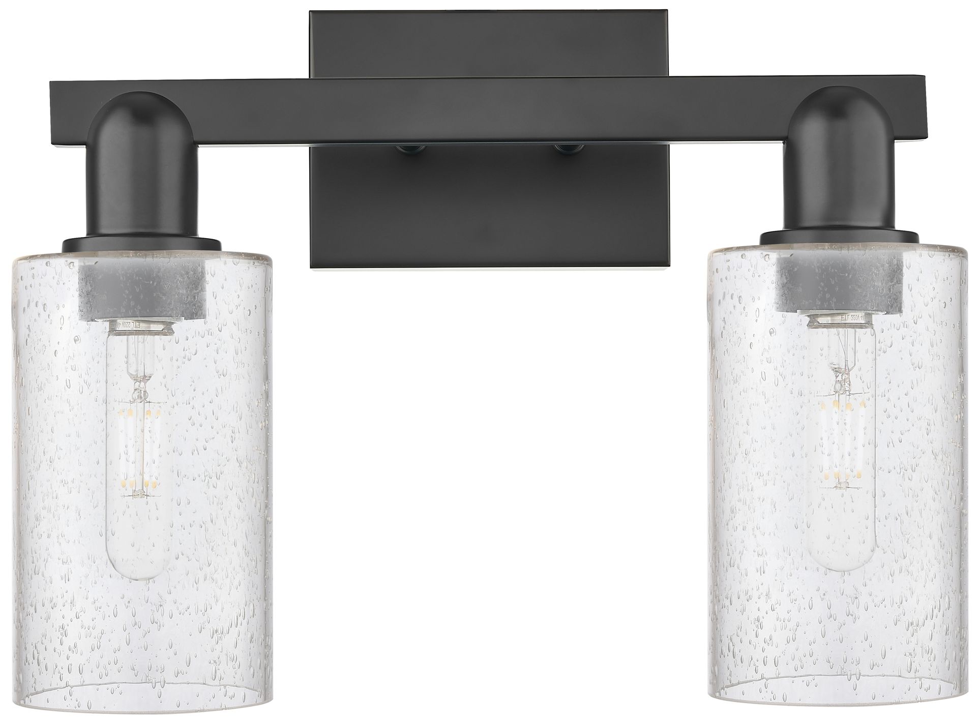 Arcadia Clymer 15"W 2 Light Matte Black Vanity Light With Seedy Shade