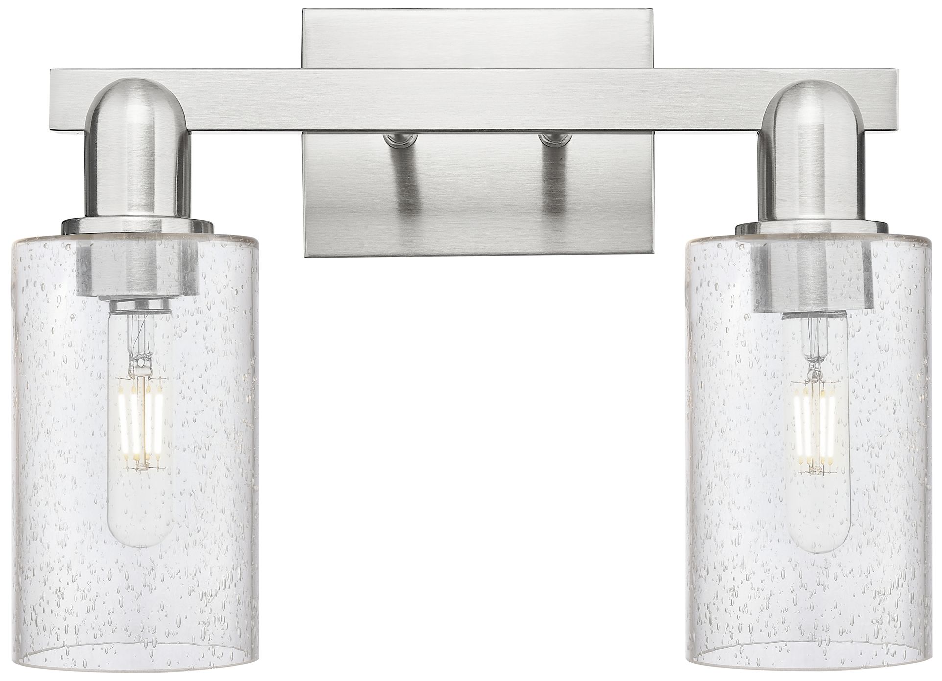 Arcadia Clymer 15"W 2 Light Brushed Nickel Vanity Light w/ Seedy Shade