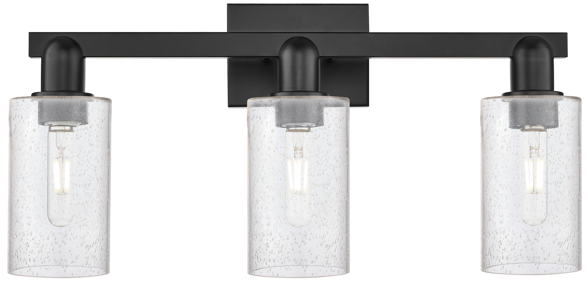 Arcadia Clymer 23"W 3 Light Matte Black Vanity Light With Seedy Shade