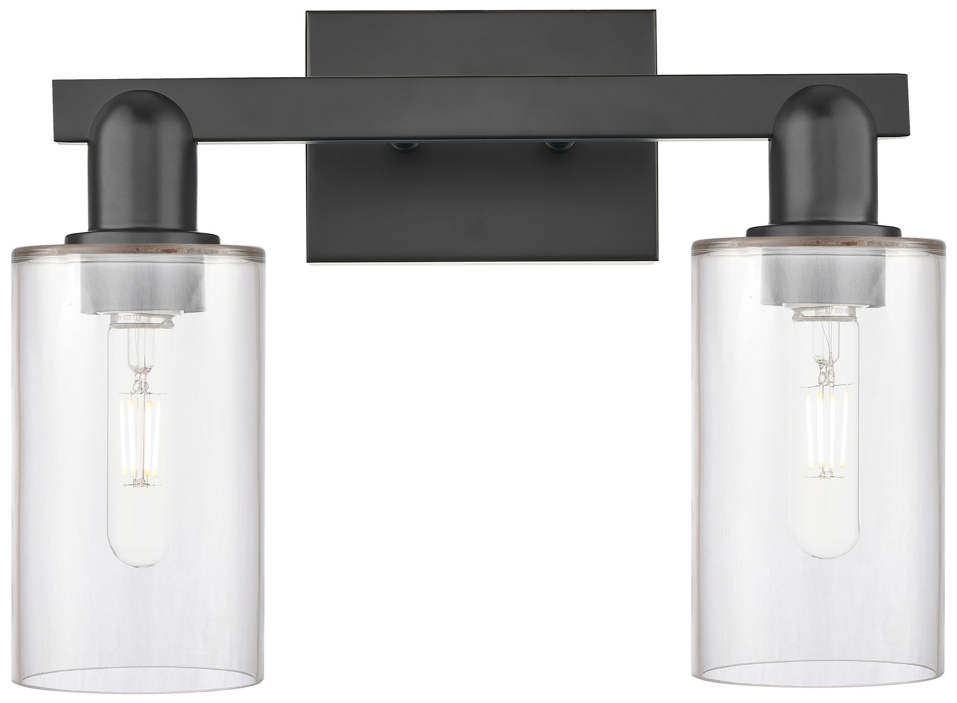 Arcadia Clymer 15"W 2 Light Matte Black Vanity Light With Clear Shade