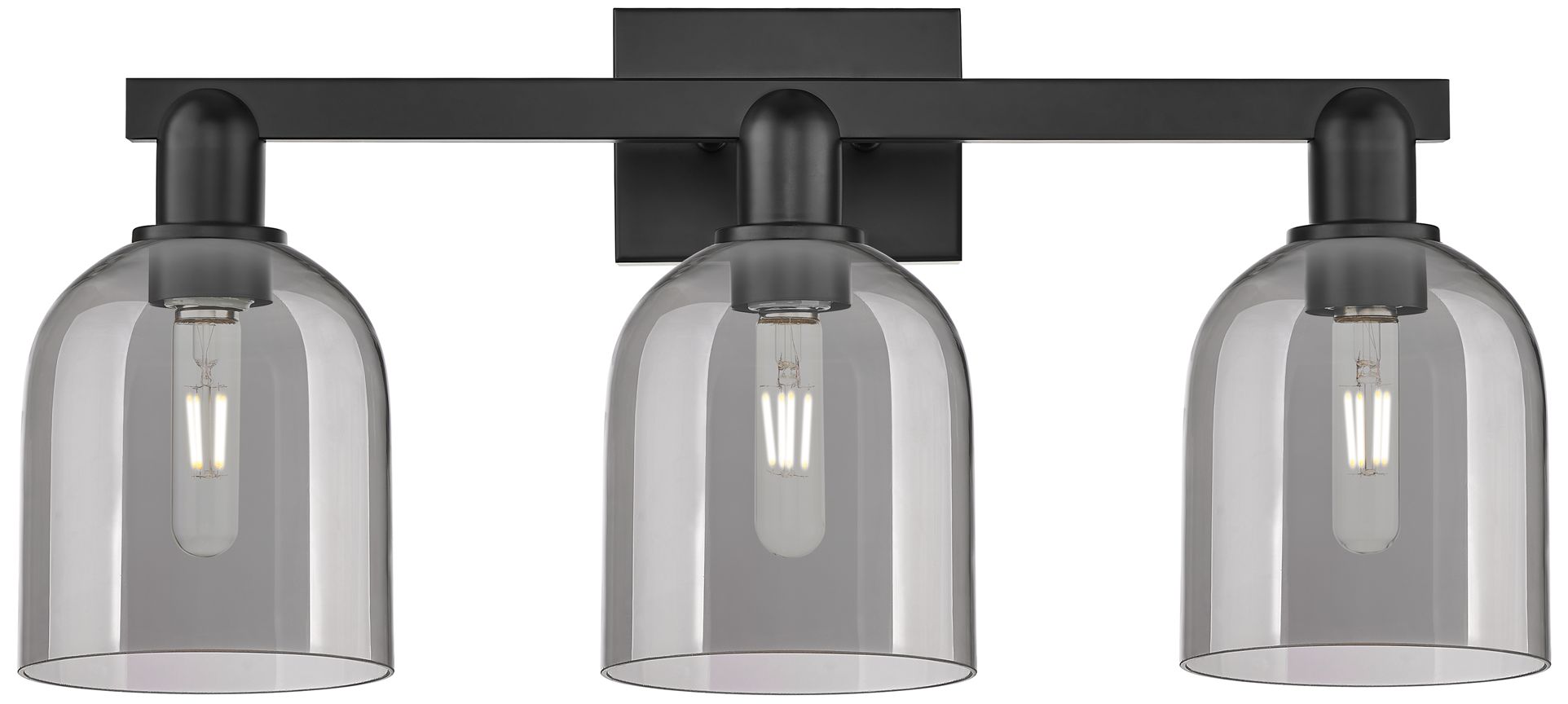 Arcadia Bella 25"W 3 Light Black Vanity Light w/ Light Smoke Shade