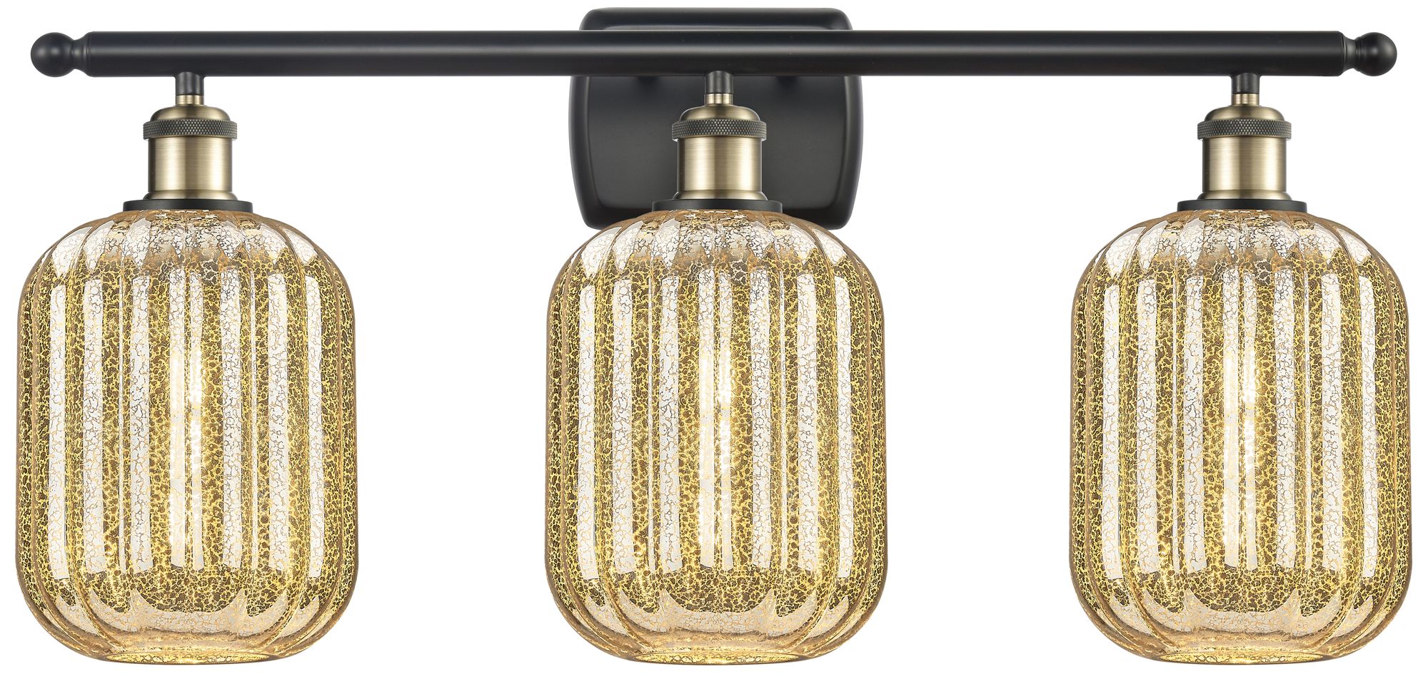 Edison Preston 25"W 3 Light Gold Vanity Light w/ Mercury Jar Shade