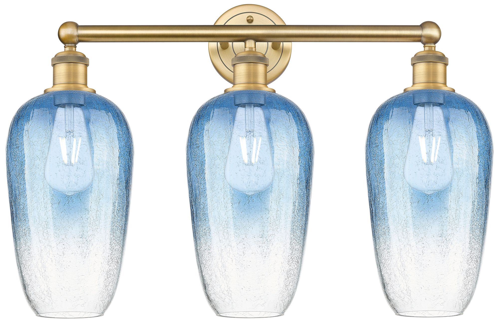 Edison Brookhaven Flute 25"W 3-Lt Brushed Brass Vanity w/ Sapphire Shade