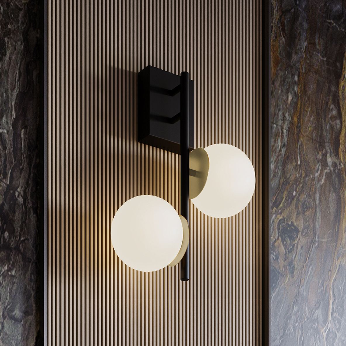 Thesis Crescendo 30" 2 Light Natural Brass Wall Sconce w/ Alabaster Glass