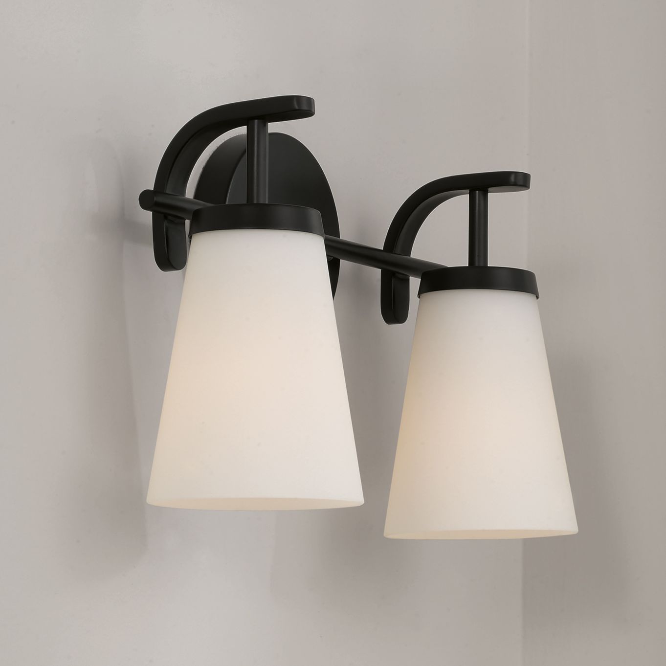Minka Lavery Mirelle 2-Light 16in Matte Black Vanity Light with Glass Shade