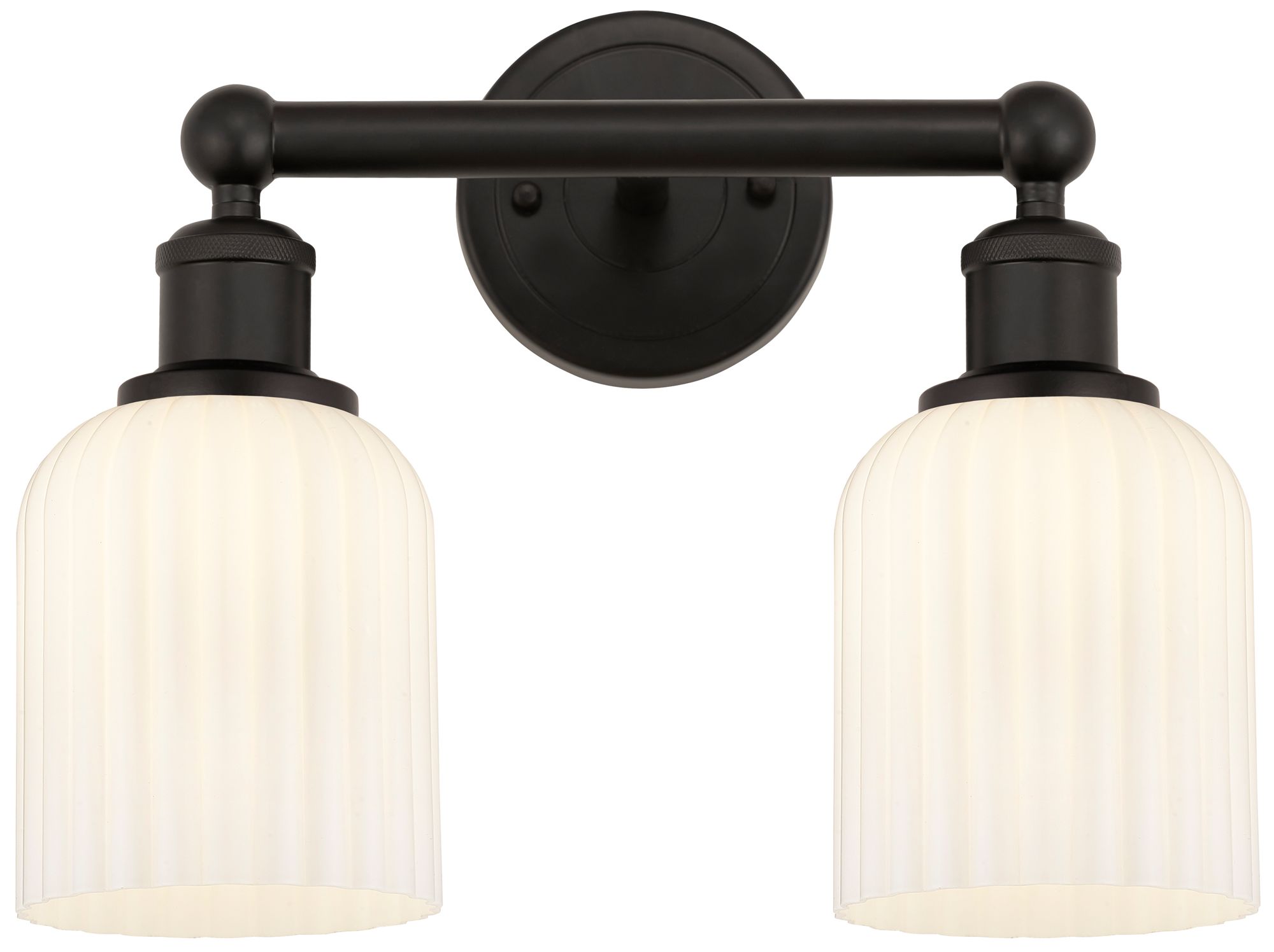 Edison Bridal Veil 2 Light 14" Bath Vanity Bronze Gloss White Shade