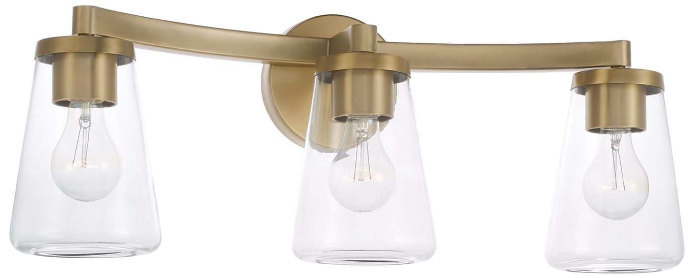 Arcadia Waverly 25"W 3 Light Brass Vanity Light With Clear Shade