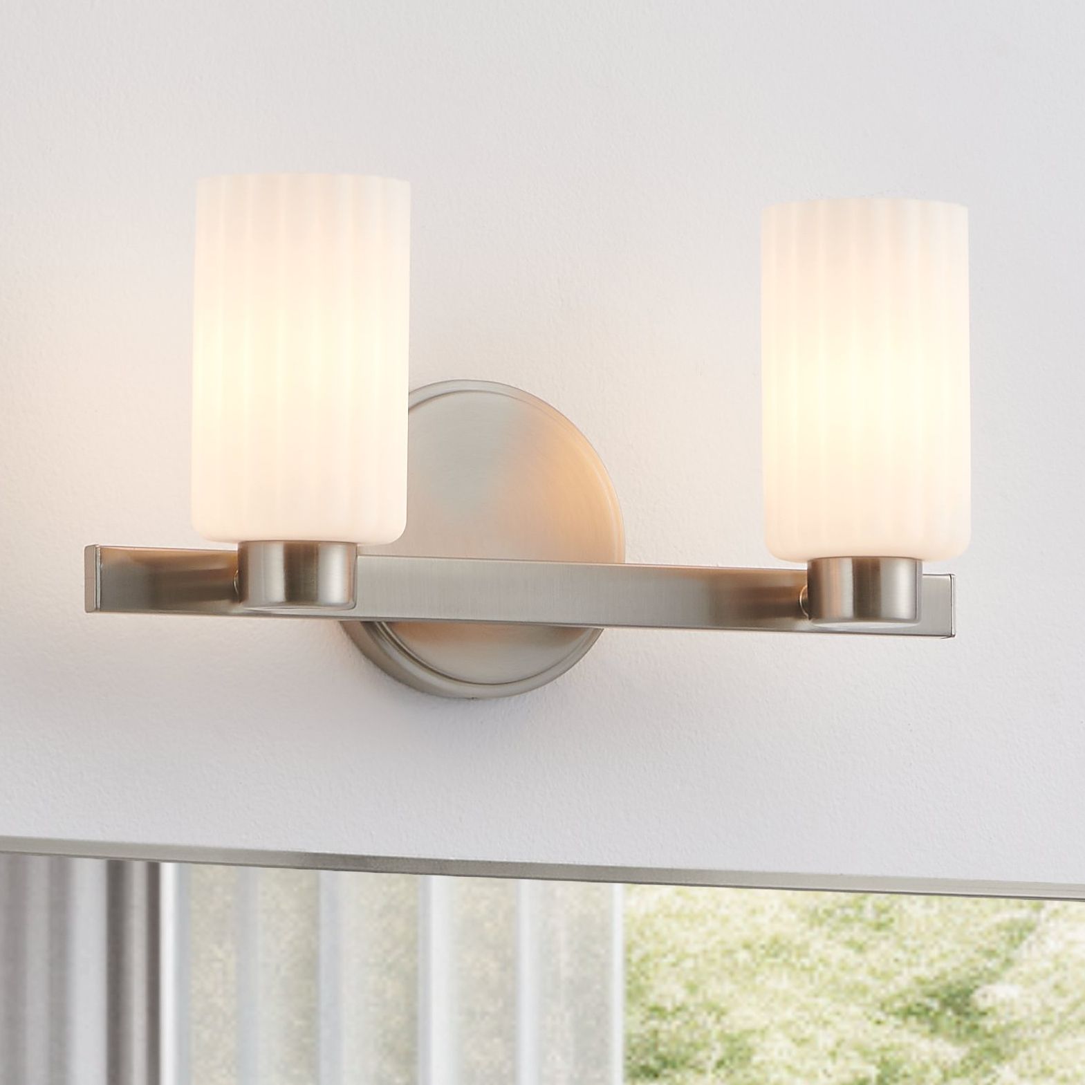 Thesis Bedminster 14" Br. Nickel Vanity Light w/ Etched Opal Glass Shades