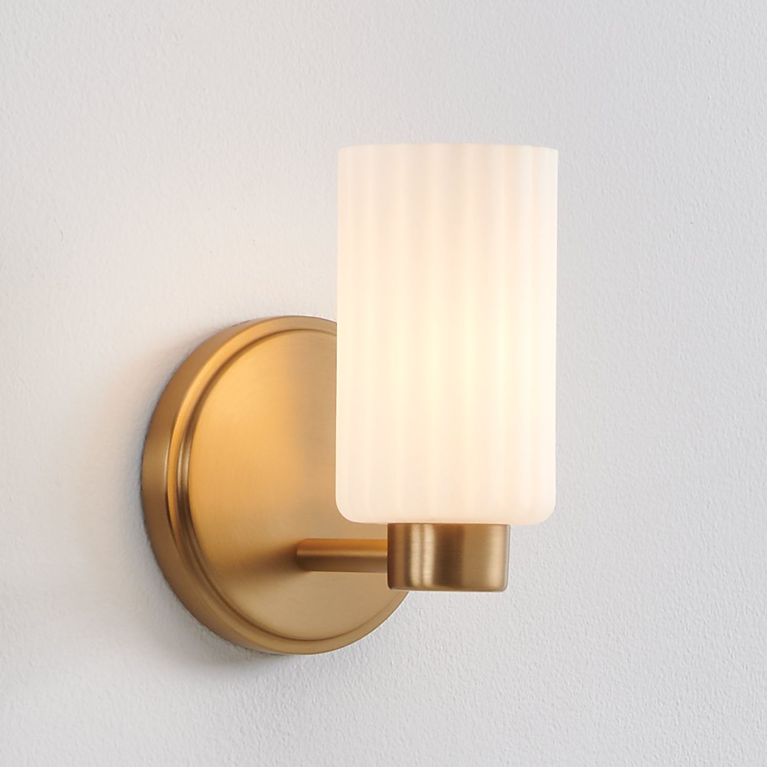 Thesis Bedminster 5" Br. Nickel Vanity Light, Etched Opal Ribbed Glass