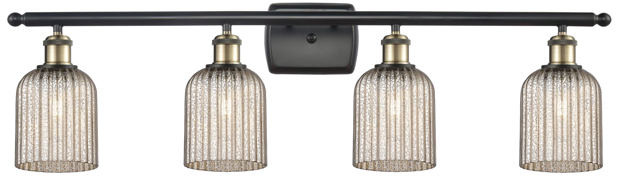 Ballston Bridal Veil 4 Light 35" Bath Vanity Black Brass Mercury Shade