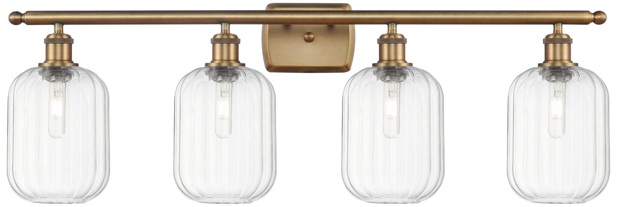 Ballston Preston 37"W 4 Light Brushed Brass Vanity w/ Clear Jar Shade