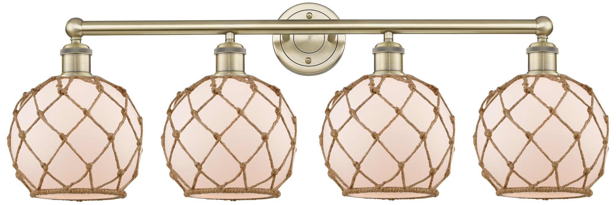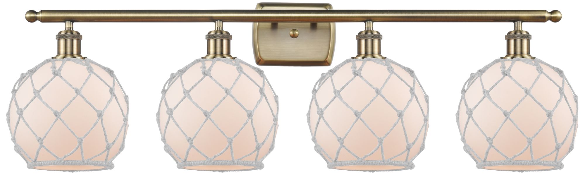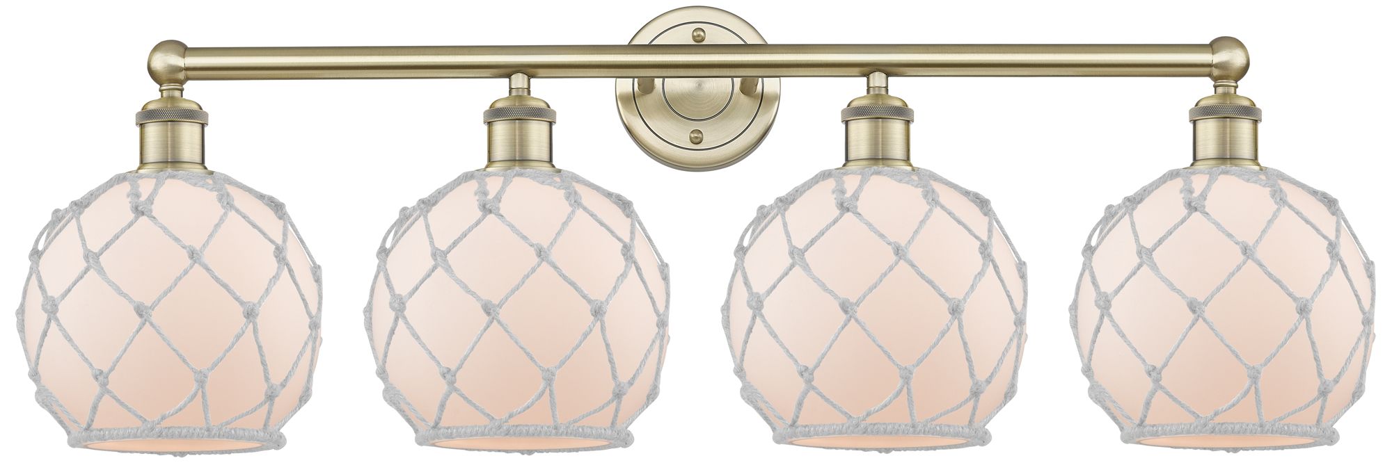 Ballston Farmhouse Rope 38"W 4 Light Brass Bath Light w/ White Shade